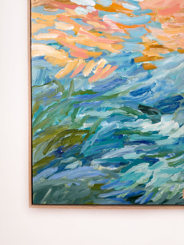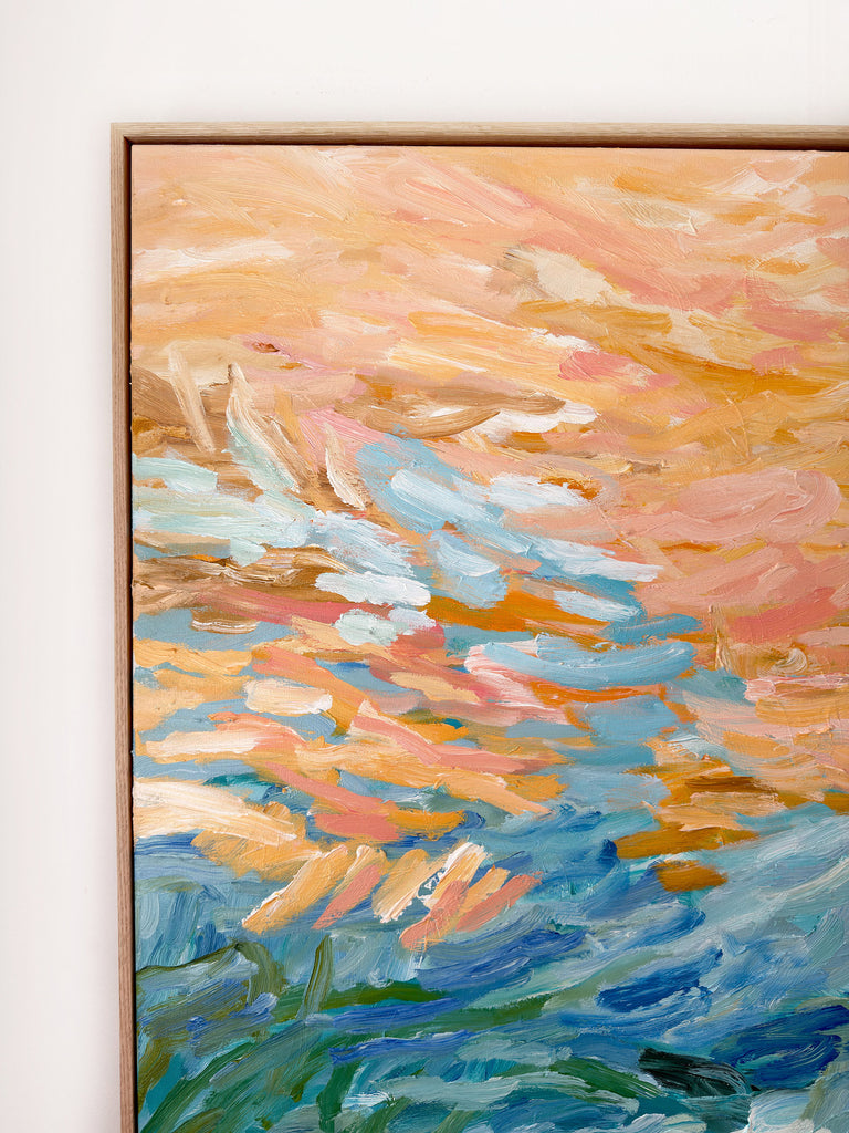 Original Artwork painted on a hand stretched canvas by a local framer in Adelaide - South Australia. Floated in a hand made Tasmanian Oak frame. Acrylic. Signature on front and back. Wire on back, ready to hang.