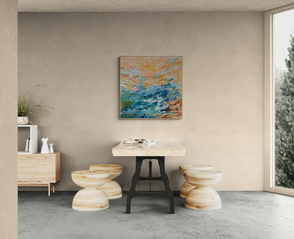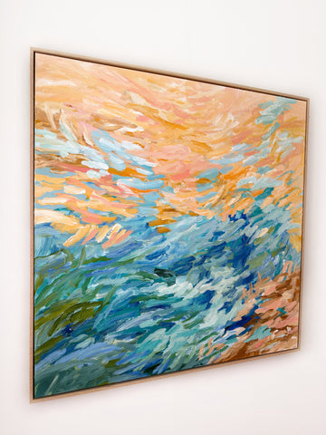 Acrylic on stretched cotton, 103cm x 103cm in oak frame.