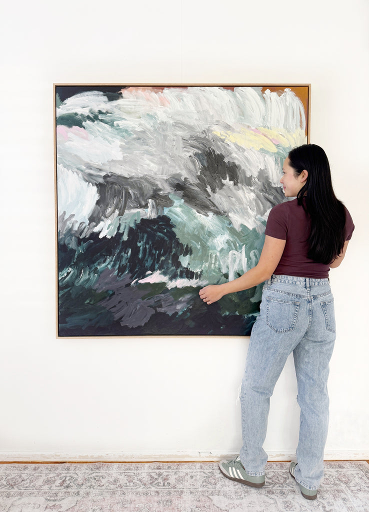 Acrylic on stretched cotton, 123cm x 123cm in oak frame.
