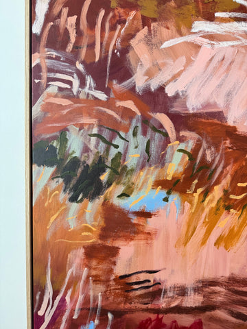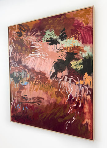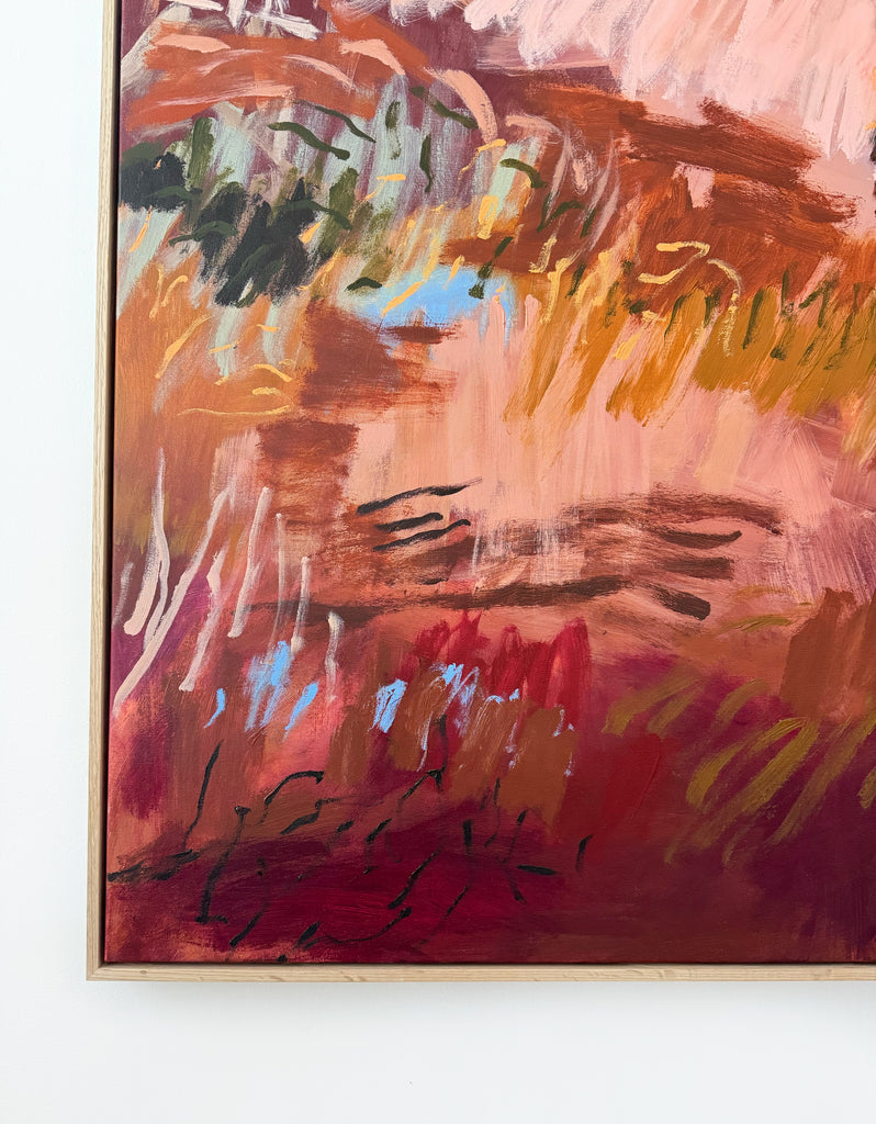 Acrylic on stretched cotton, 133cm x 113cm in oak frame.