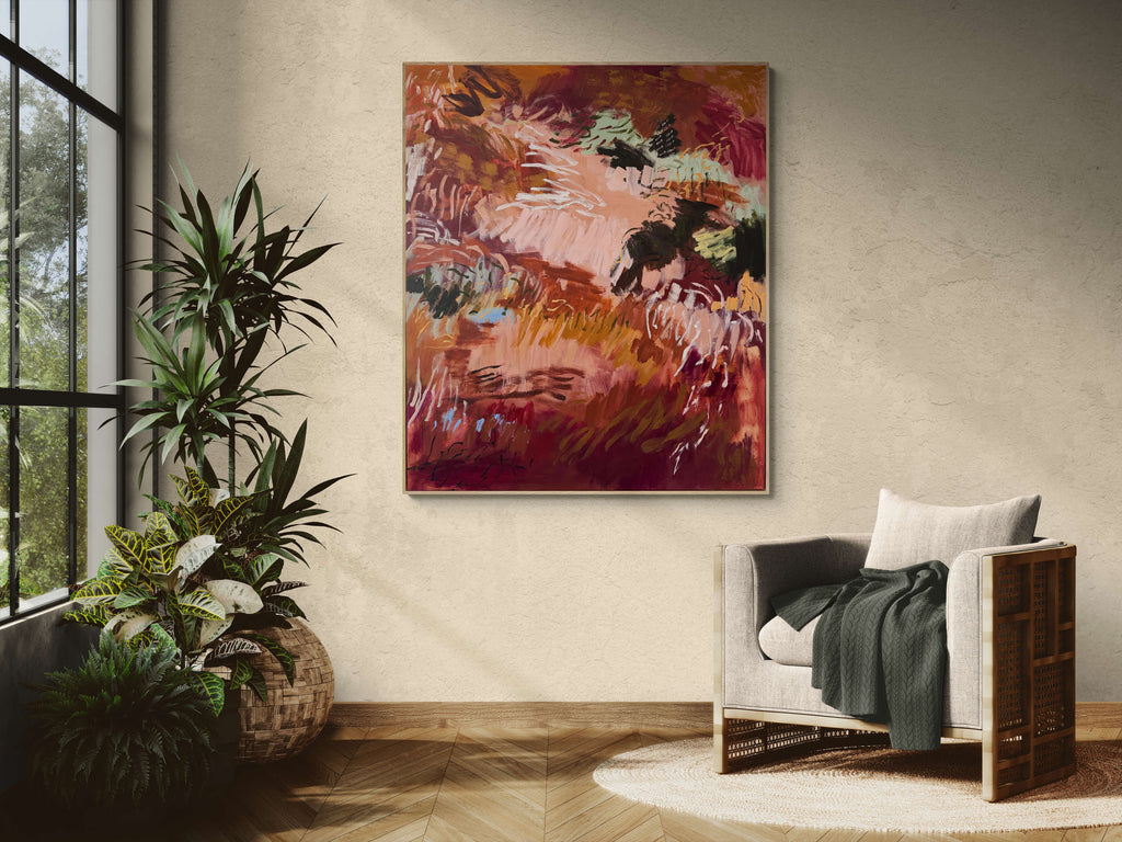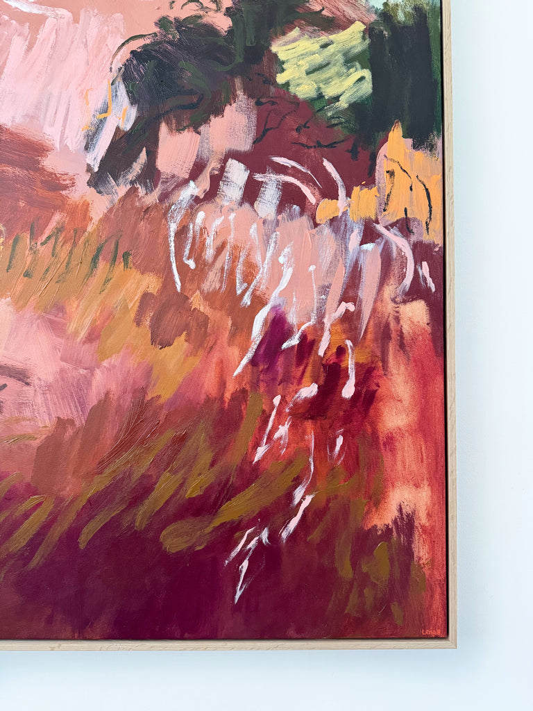 Original Artwork painted on a hand stretched canvas by a local framer in Adelaide - South Australia. Floated in a hand made Tasmanian Oak frame. Acrylic. Signature on front and back. Wire on back, ready to hang.