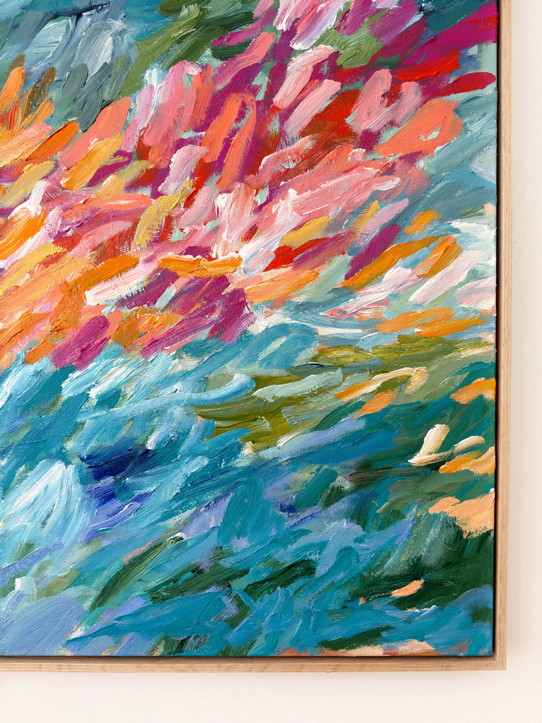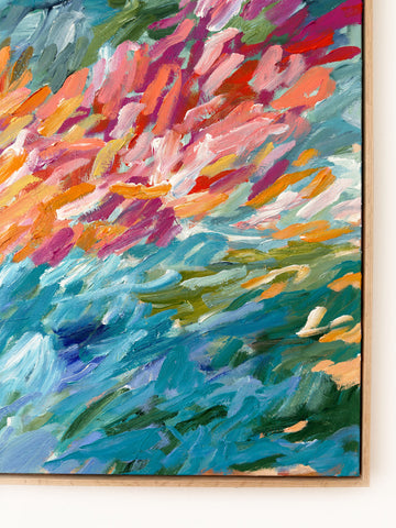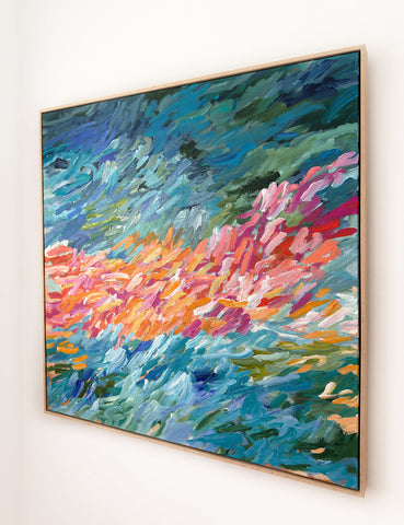 Original Artwork painted on a hand stretched canvas by a local framer in Adelaide - South Australia. Floated in a hand made Tasmanian Oak frame. Acrylic. Signature on front and back. Wire on back, ready to hang.
