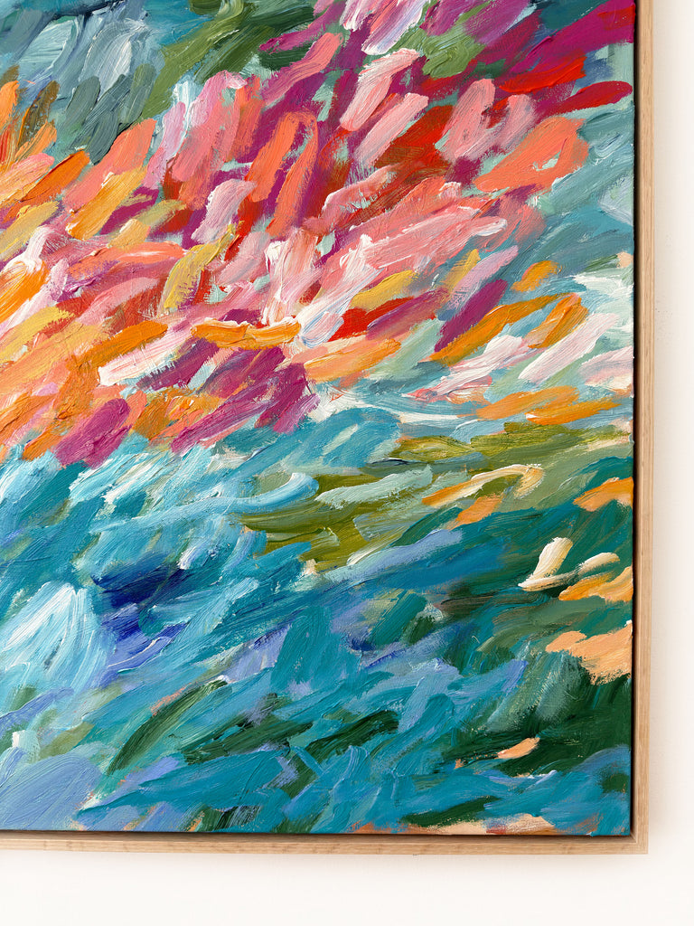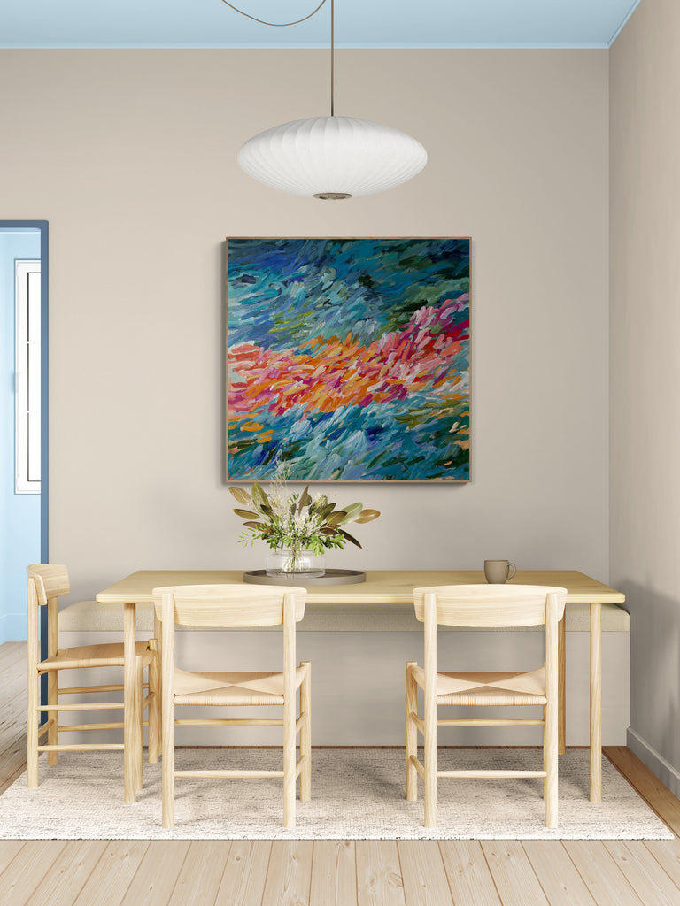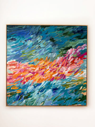Acrylic on stretched cotton, 103cm x 103cm in oak frame.
