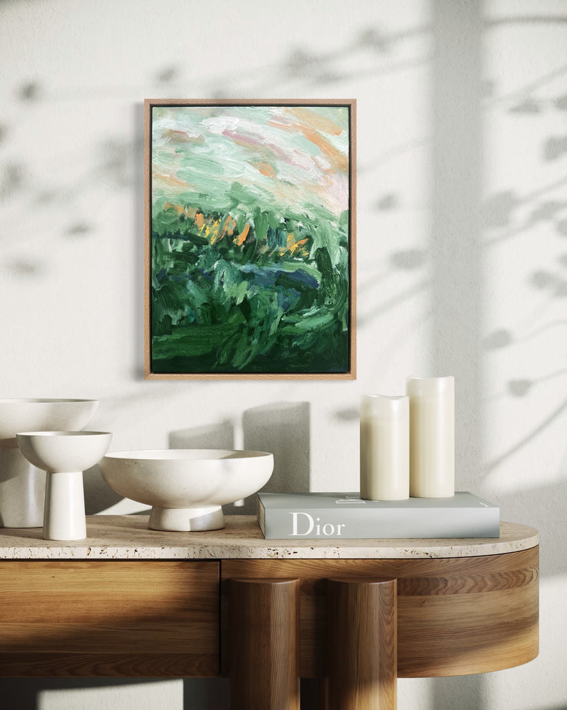 Acrylic on stretched cotton, 43cm x 33cm in oak frame.